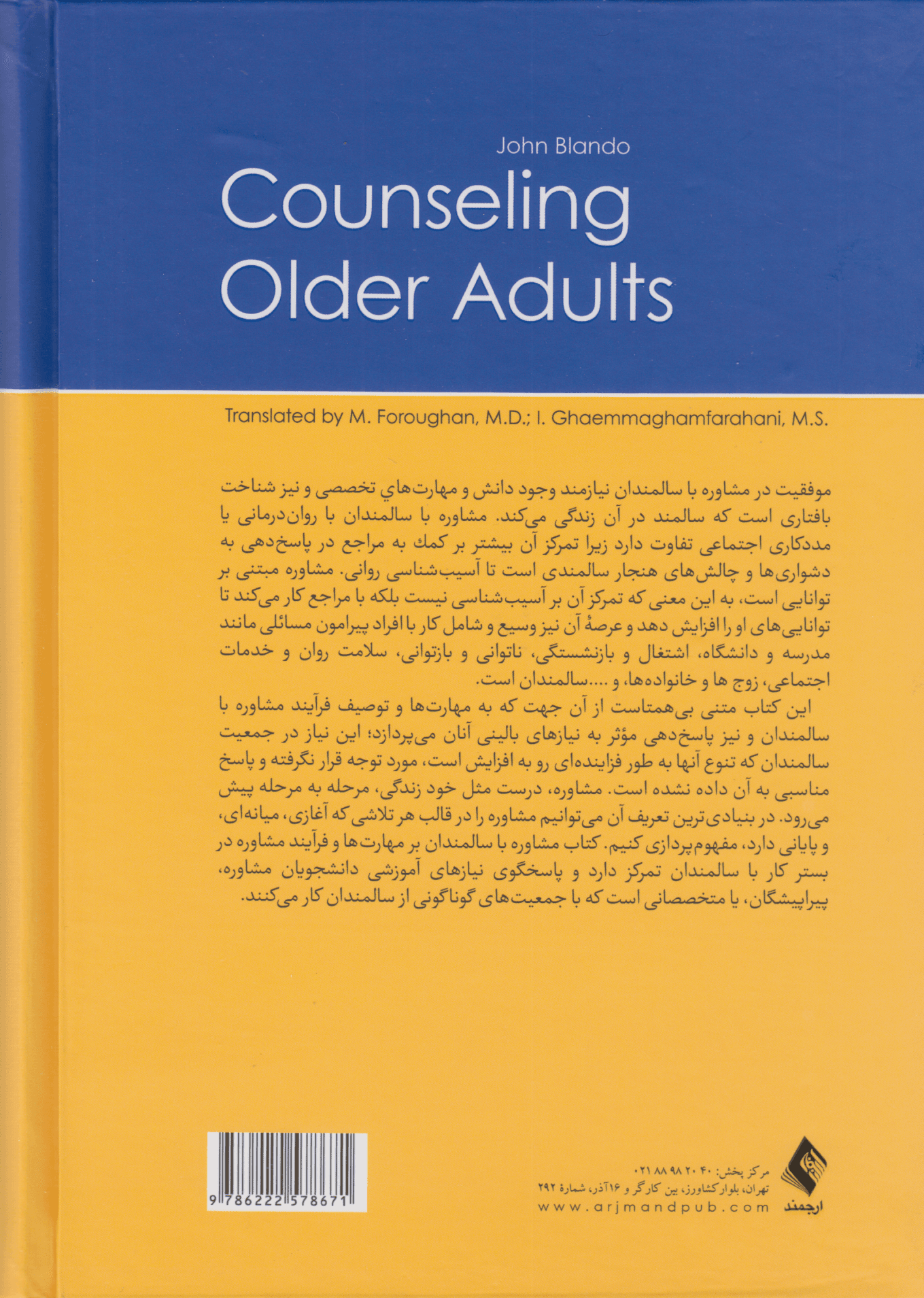 موفقیت در مشاوره با سالمندان نیازمند وجود دانش و مهارتهای تخصصی و نیز شناخت بافتاری است که سالمند در آن زندگی میکند. مشاوره با سالمندان با رواندرمانی یا مددکاری اجتماعی تفاوت دارد زیرا تمرکز آن بیشتر بر کمک به مراجع در پاسخدهی به دشواریها و چالشهای هنجار سالمندی است تا آسیبشناسی روانی. مشاوره مبتنی بر توانایی است، به این معنی که تمرکز آن بر آسیبشناسی نیست بلکه با مراجع کار میکند تا تواناییهای او را افزایش دهد و عرصۀ آن نیز وسیع و شامل کار با افراد پیرامون مسائلی مانند مدرسه و دانشگاه، اشتغال و بازنشستگی، ناتوانی و بازتوانی، سلامت روان و خدمات اجتماعی، زوج ها و خانوادهها، و... سالمندان است. این کتاب متنی بیهمتاست از آن جهت که به مهارتها و توصیف فرآیند مشاوره با سالمندان و نیز پاسخدهی مؤثر به نیازهای بالینی آنان میپردازد؛ این نیاز در جمعیت سالمندان که تنوع آنها بهطور فزایندهای رو به افزایش است، مورد توجه قرار نگرفته و پاسخ مناسبی به آن داده نشده است. مشاوره، درست مثل خود زندگی، مرحله به مرحله پیش میرود. در بنیادیترین تعریف آن میتوانیم مشاوره را در قالب هر تلاشی که آغازی، میانهای، و پایانی دارد، مفهومپردازی کنیم. کتاب مشاوره با سالمندان بر مهارتها و فرآیند مشاوره در بستر کار با سالمندان تمرکز دارد و پاسخگوی نیازهای آموزشی دانشجویان مشاوره، پیراپیشگان، یا متخصصانی است که با جمعیتهای گوناگونی از سالمندان کار میکنند.